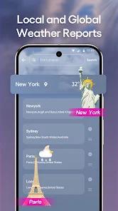 A standout feature of the app is its dynamic interface, which changes its background and theme based on the current weather conditions of the selected city. It also supports a "Multi-City" management system, allowing users to track global locations with a single swipe. For power users, the app offers real-time satellite radar and a customizable home screen widget.