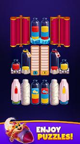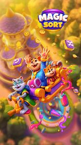 Magic Sort! is a whimsical evolution of the "water sort" puzzle genre, characterized by its magical theme and vibrant visual style. The game tasks players with sorting colored liquids into individual glass bottles, with the restriction that water can only be poured if it matches the color of the target bottle’s top layer and there is sufficient space. The application is marketed as a "brain-sharpening" tool that provides a "tranquil" and "chill" atmosphere through its color-sorting mechanics.