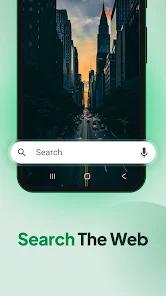 Offers home screen customization through themed wallpapers and high-utility widgets, creating a localized search hub.