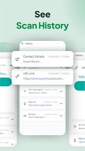 The "Scan History" feature is robust and business-friendly, supporting CSV exports for inventory or logistical tracking.