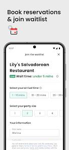 The "Waitlist" and "Reservation" features help users save time by booking tables or joining lines from their phone.
